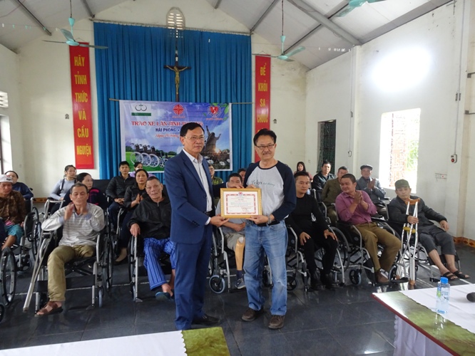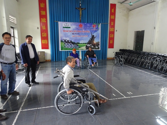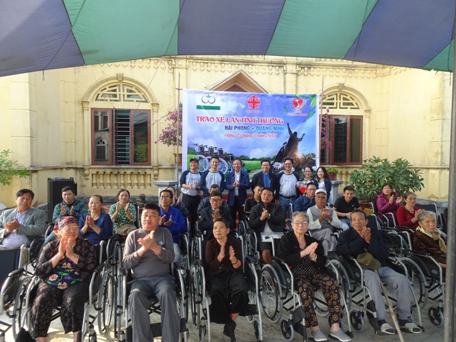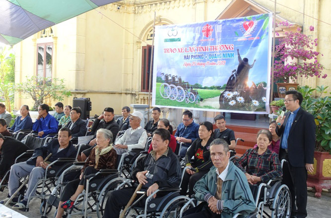 Ngày 20 tháng 11 vừa qua, Caritas Hải Phòng đã kết hợp với Hội Xe Lăn Tình Thương (Hoa Kỳ) và Caritas Việt Nam trao tặng 70 chiếc xe lăn cho những NKT tại tỉnh Quảng Ninh và thành phố Hải Phòng. Buổi trao xe cũng có sự hiện diện của đại diện Hội bảo trợ người tàn tật và trẻ em mồ côi thành phố Hải Phòng, tỉnh Quảng Ninh, những NKT được nhận xe và thân nhân trong gia đình.