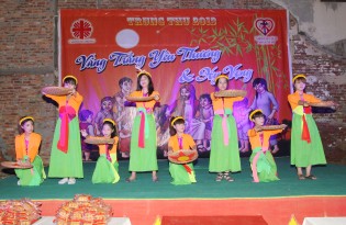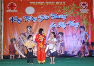 Tới Nhà Thờ Không chỉ được gặp Chúa Giêsu Thánh Thể, gặp Quý Cha, Quý Sơ, các anh chị và các bạn, cùng nhau rước đèn ông sao, các em còn được vui hết mình với các vũ điệu, bài hát, các tiết mục văn nghệ Trung Thu do chính các “nghệ sĩ tí hon” khiếm thính, khiếm thị, bị ảnh hưởng bởi HIV/AIDS… thể hiện rất chuyên nghiệp, theo sự dẫn dắt của 2 MC chú Cuội và chị Hằng.