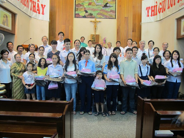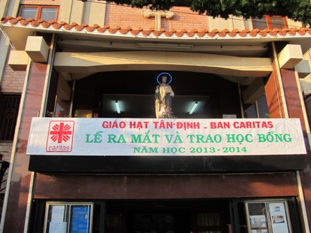 Trong tinh thần đó, ban Caritas Giáo hạt Tân Định đã tổ chức trao phần hỗ trợ cho các em học sinh và sinh viên có hoàn cảnh khó khăn nhưng đã cố gắng vươn lên trong học tập. Có 15 em học sinh được nhận hỗ trợ, mỗi suất trị giá 200.000đ /tháng và hỗ trợ cho 5 em sinh viên, mỗi suất trị giá 300.000đ/tháng. Học bổng sẽ được trao 3 tháng 1 lần cho đến hết năm.