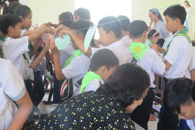 Qua phần mở đầu, các em ca hát cùng với các trò chơi khởi động. Kế đến, với sự hướng dẫn của Nữ tu Trà Ảnh, các em tham gia các hoạt động vừa chơi vừa học. Sơ Trà Ảnh nói: Để sống vui các em cần khám phá những nét đẹp chung quanh mình, sống với tâm tình tạ ơn. Tạ ơn Chúa ban cho mình bầu trời trong xanh có sông núi, suối ngàn, có cỏ cây hoa lá… Có cha, có mẹ, có thầy cô, bạn bè… Chúa cho mình được sinh ra trên cõi đời, mình là tác phẩm tuyệt vời có một không hai trên thế gian, là kiệt tác của Thiên Chúa. Không chỉ thế, những người bạn mình cũng là tác phẩm tuyệt vời của Ngài. Vậy, để khám phá nét đẹp đó, các em đã có một hoạt động và ghi lại trên giấy những điều mà các em nhận ra.