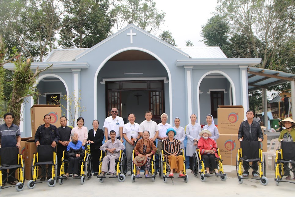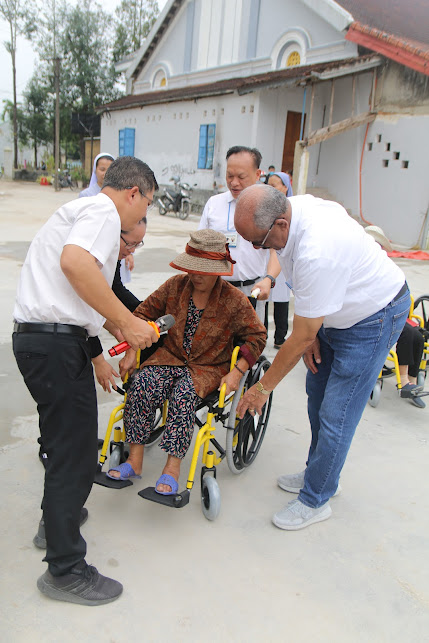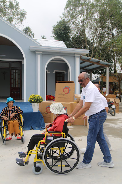 Caritas Huế chúng con kính tri ân Cha Giuse Hoàng Bùi , ông John Williams Hội American Wheelchair Mission, và Sơ Maria Bích Trâm đã đến để chia sẻ và trao xe lăn cho anh chị em tại Tổng Giáo phận Huế. Chúng con cũng cám ơn Cha Phanxicô Nguyễn Thiện Nhân và Giáo xứ Nước Ngọt đã đón tiếp, tạo điều kiện thuận lợi cho việc quy tụ bà con nhận xe lăn và việc trao phát xe lăn diễn ra tốt đẹp. Cuối hành trình đoàn đã ghé thăm Toà Giám mục, Đức Tổng Giuse và văn phòng Caritas Huế.