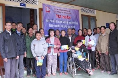 Ông Tôma Hoàng Kim Khánh, nhân viên phụ trách công tác hỗ trợ người khuyết tật của Caritas Huế nói: “… Chúng tôi căn cứ vào Luật Người Khuyết Tật, số 51/2010/QH12, được Quốc Hội khóa XII, thông qua ngày 17/6/2010, trong kỳ họp thứ 7, và ông Nguyễn Phú Trọng, lúc bấy giờ là Chủ tịch Quốc Hội ký ban hành; và các Nghị định 28/2012/NĐ-CP và Nghị định 136/2013/NĐ-CP do ông Nguyễn Tấn Dũng, nguyên Thủ tướng Chính phủ ký ban hành vào ngày 10/4/2012, Nghị định 28; và vào ngày 21/10/2013, Nghị định 136. Đó là những văn bản luật pháp đang có hiệu lực thi hành, để giải thích cho anh chị em khuyết tật hoặc thân nhân người khuyết tật biết rõ họ hoặc người thân của họ được hưởng những quyền lợi nào? Làm cách nào để nhận được những quyền lợi ấy? và nếu trong trường hợp quyền lợi của họ chưa thõa đáng thì thủ tục xin điều chỉnh như thế nào? ...”