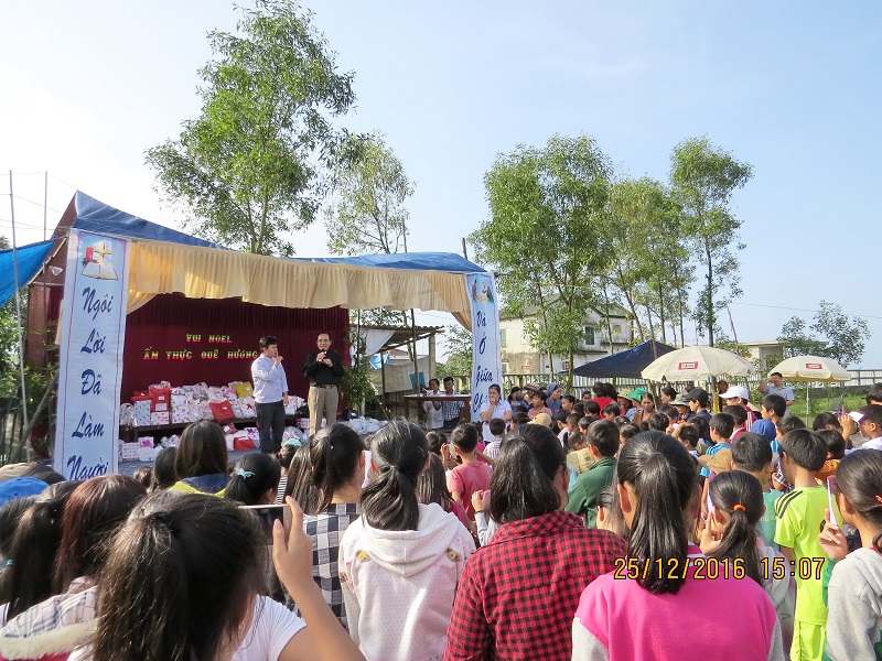 Nói chuyện với 300 em thiếu nhi và phụ huynh trước phần bốc số nhận quà, cha Antôn chia sẻ những khó khăn, thiếu thốn trong cuộc sống hiện tại với anh chị em giáo dân trong giáo xứ và bà con lương dân trong địa phương; ngài mong rằng, "… với cố gắng của anh chị em và bà con, nhờ ơn Chúa, cuộc sống của chúng ta sẽ từng bước lớn lên".