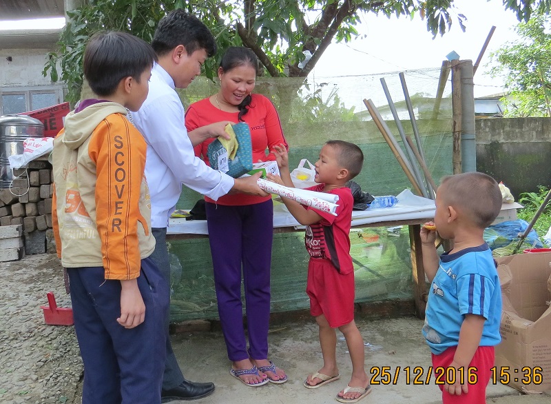 Chiều ngày 25/12/2016, cha Antôn Nguyễn Ngọc Hà, Đặc trách và các Nhân viên Văn phòng Caritas Huế đến thăm và tặng quà Giáng sinh cho các em thiếu nhi, không phân biệt lương giáo, tại giáo xứ Chánh Xuân, hạt Hải Vân.