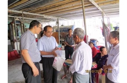 Sáng ngày 19/10/2016, cha Antôn Nguyễn Ngọc Hà, Giám đốc và các Nhân viên Văn phòng Caritas Huế đã đến thăm và tặng quà cứu trợ cho bà con giáo dân ở giáo xứ Trung Quán, cách Tòa Giám mục Huế khoảng 145km, thuộc tỉnh Quảng Bình.
