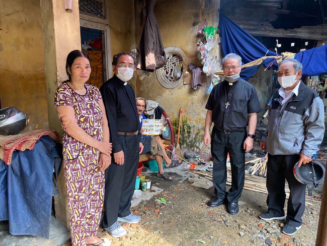 Đồng hành với chương trình Bác ái “Trao Yêu Thương Vượt Qua Dịch Bệnh” của Giáo phận, sau thời gian cách ly xã hội theo chỉ thị của Chính phủ, ngày 16.4.2020, Đức TGM Giuse Nguyễn Chí Linh trực tiếp thăm viếng và chia sẻ sự khó khăn với những anh chị em nghèo khổ trong địa bàn thành phố Huế. Đến với các gia đình, chúng tôi như khựng lại trước những mảnh đời vốn đã nghèo nàn – thiếu thốn, giờ lại càng khốn khổ hơn khi xã hội chưa có những hoạt động bình thường để những người con người cháu lao vào cuộc đời hầu mang về một cái gì đó cho những cụ ông cụ bà lớn tuổi. Có gia đình mà chúng tôi đã gặp: 4 anh em cùng ở chung với nhau khi các cụ đã ra đi, không một ai trong đó lập gia đình, bởi vì 3 người anh, tuy lớn tuổi nhưng đều mắc bệnh tâm thần, còn người em gái út ở vậy nuôi các anh. Nhìn chị, tôi chợt nghĩ không biết chị lo lắng cho các anh như thế nào, khi con người của chị còm cỏi, ốm yếu? Thật, quá thương tâm!