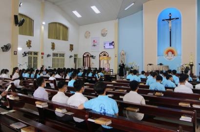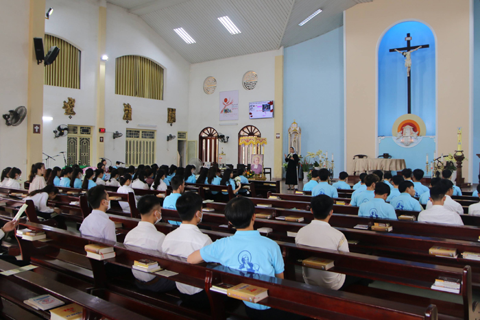 Sáng ngày 22/5/2022 sau khi kết thúc Thánh lễ Chúa Nhật VI Phục Sinh, tại nguyện đường Dòng Thánh Tâm Huế, được sự cho phép của Cha Vinh Sơn Nguyễn Văn Hanh (CSC) đặc trách Sinh viên Công giáo Thánh Tâm Huế, Ban Di Cư An Toàn của Caritas Huế đã đến gặp gỡ truyền thông cho 100 bạn Sinh viên Công giáo tổ Gioan Lasan Thánh Tâm Huế về “Thực Trạng Buôn Bán Người Ở Việt Nam”.