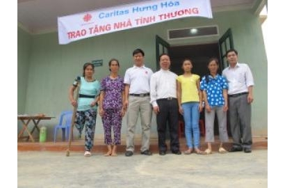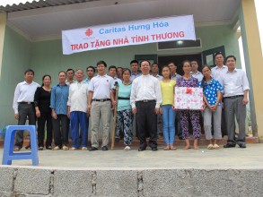 Hiện diện trong buổi khánh thành và trao nhà có Chính quyền địa phương và gia đình ông Phủ, linh mục Phaolô Nguyễn Quốc Anh – Giám đốc Caritas Hưng Hóa đã cập đến sứ mạng mục tiêu của Caritas Hưng Hóa. Ngài nói: “Nghe từ Caritas mọi người có vẻ thấy lạ và không hiểu, nhưng thực ra là hội bác ái chuyên lo cho người nghèo cả vật chất lẫn tinh thần, không phân biệt lương giáo… Sứ mệnh của chúng tôi là phát triển con người toàn diện, thăng tiến và giúp đỡ người nghèo, qua các chương trình chăm sóc sức khỏe cộng đồng, phát triển cộng đồng, bảo vệ sự sống, hỗ trợ người khuyết tật, khuyến học…”. Ngài cũng đại diện cho Caritas Hưng Hóa trao chìa khóa cho gia đình và từ nay gia đình ông Lồ Khái Phủ có ngôi nhà trú ngụ. Thật cảm động!
