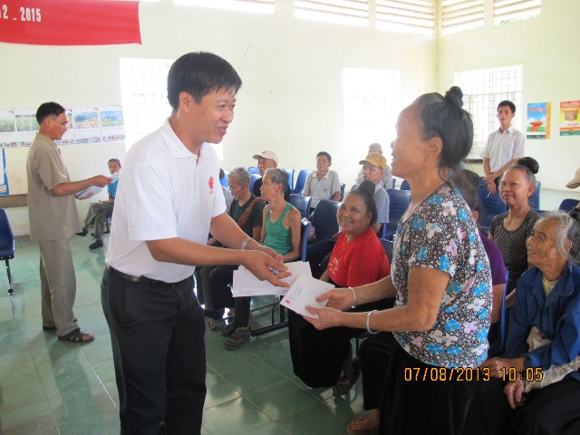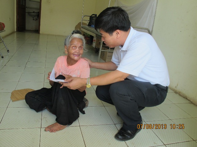 Cha Giám đốc Caritas, cùng với Giám đốc trại đã trực tiếp trao cho mỗi bệnh nhân số tiền hỗ trợ 6 tháng cuối năm 2013 là 1.140.000 đ. Tổng số tiền cho 51 bệnh nhân là 58.140.000 đ. Món quà tuy nhỏ, nhưng thật ý nghĩa trong tinh thần bác ái Kitô giáo. Mọi người đều rất phấn khởi, vui vẻ. Cụ Lò Văn Hít, khập khiễng trong cái chân giả nói: " Đoàn linh mục vui vẻ và quan tâm thế này thì tốt lắm". Cụ Lò Thị Pản nhiều tuổi nhất, tay cầm phong bì quà mắt ngấn lệ nói giọng run run: "Cảm ơn các con nhé". Có cụ nhận quà xong, đoàn phải bế về nhà.