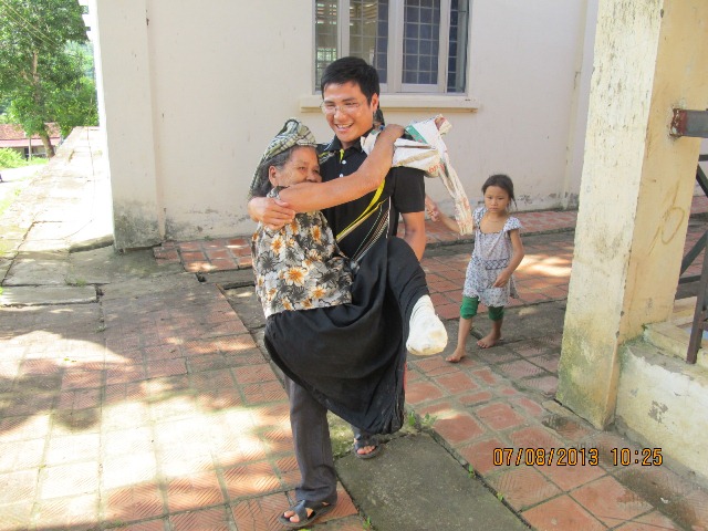 Ông Hoa dẫn Cha Giám đốc Caritas đi tặng quà cho một số cụ không đi được, phải nằm ở nhà. Ông cũng thay mặt cho các bệnh nhân cám ơn đoàn đã dành sự quan tâm, chia sẻ với bà con bệnh nhân phong tại trại Sơn La này và hy vọng có dịp lại được tiếp đón đoàn tại đây.