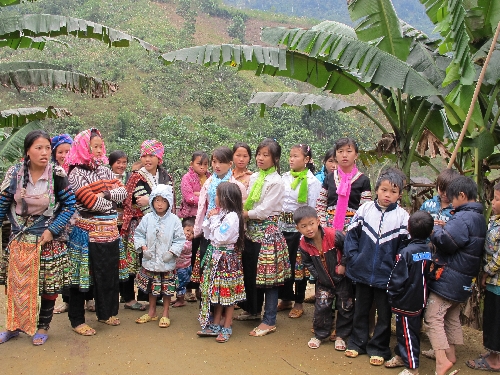 Đây là một bản gồm 40 hộ gia đình, gồm 187 người dân tộc H’mông sống heo hút ở trong rừng sâu. Đoàn phải đi một quãng đưỡng xa hơn 100 km bằng xe hơi, sau đó đi xe máy khoảng 10 km, rồi đi bộ mất khoảng 7 km mới vào đến thôn bản. Trời lạnh buốt, nhưng đi bộ đường dài chẳng còn thấy cái lạnh nữa. Đường đi đến bản rất khó khăn, vất vả. Trời nắng thì còn có thể đi xe gắn máy. Còn nếu trời mưa thì chỉ còn cách đi bộ hết cả 17 km mà thôi. Cha xứ phụ trách họ giáo Khe Nhồi đã nhiều lần đi vào bản để dâng lễ cho bà con, trợ cấp gạo, thuốc bệnh và các nhu yếu phẩm khác nói vui với đoàn: