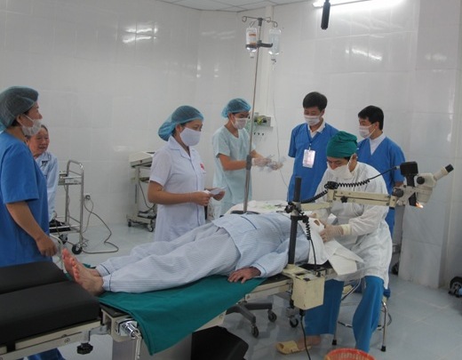 Bác sĩ Võ Nguyễn Mân đang tiến hành phẫu thuật mắt