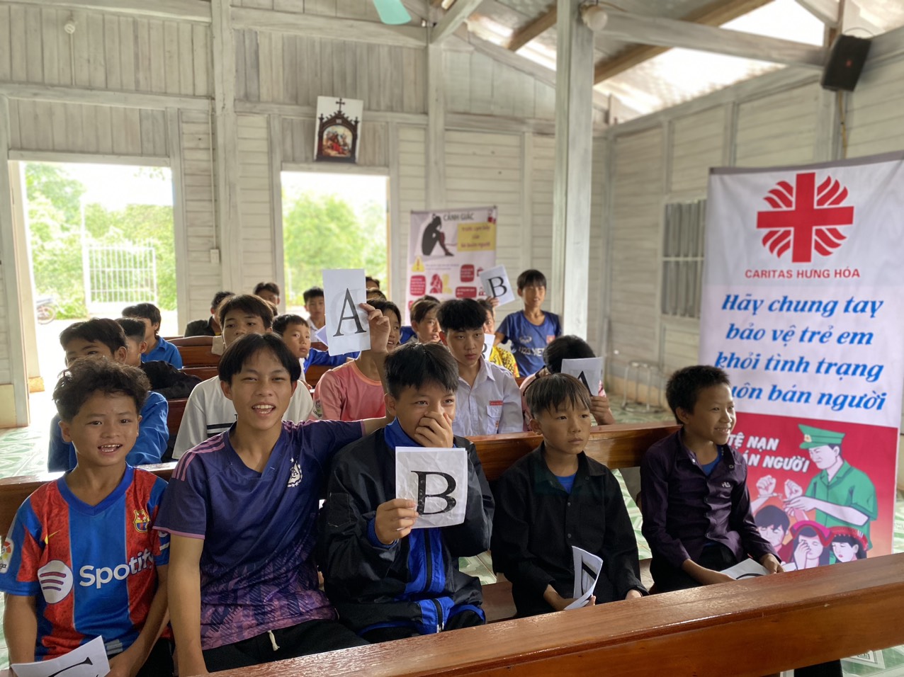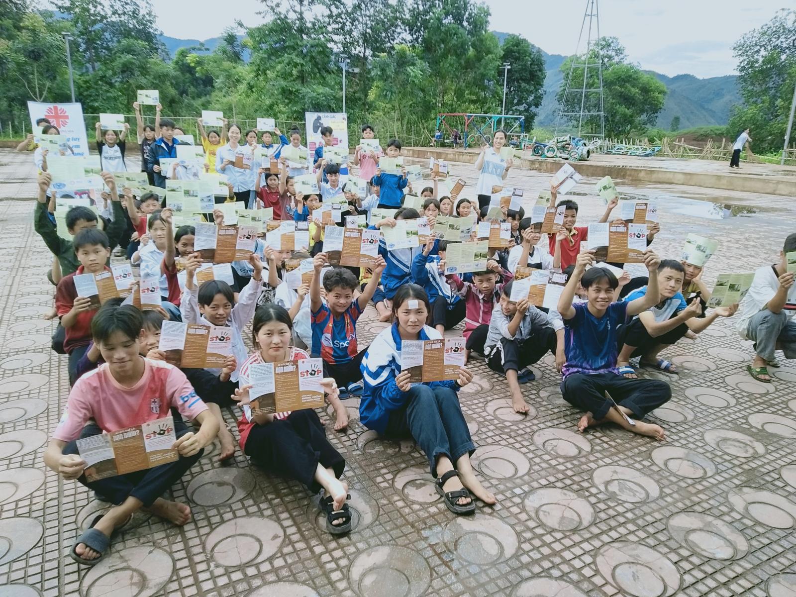 Sáng Chúa Nhật, ngày 14/07/2024, Caritas Hưng Hóa tiếp tục chia sẻ cho khoảng 220 em thiếu nhi và bà con giáo dân người H’ Mong về việc phòng chống nạn buôn người và trao đến tay từng người dân tờ rơi đã được chuẩn bị nhằm giúp bà con nâng cao ý thức và cảnh giác. Được biết huyện Nậm Pồ cũng là điểm nóng trong việc phòng chống nạn buôn bán người của Việt Nam trong những năm qua.