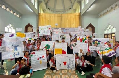 Caritas Hưng Hóa: Truyền thông về Di cư an toàn và Phòng chống buôn người cho hơn 600 bạn huynh - dự trưởng HĐ Đaminh Sơn Tây