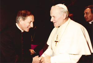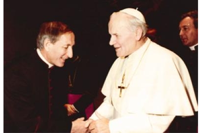 | Đức Ông Georg Hüssler trong cuộc tiếp kiến ĐTC Gioan Phaolo II dịp họp Hội đồng Quản trị Caritas tháng 11/1981 |