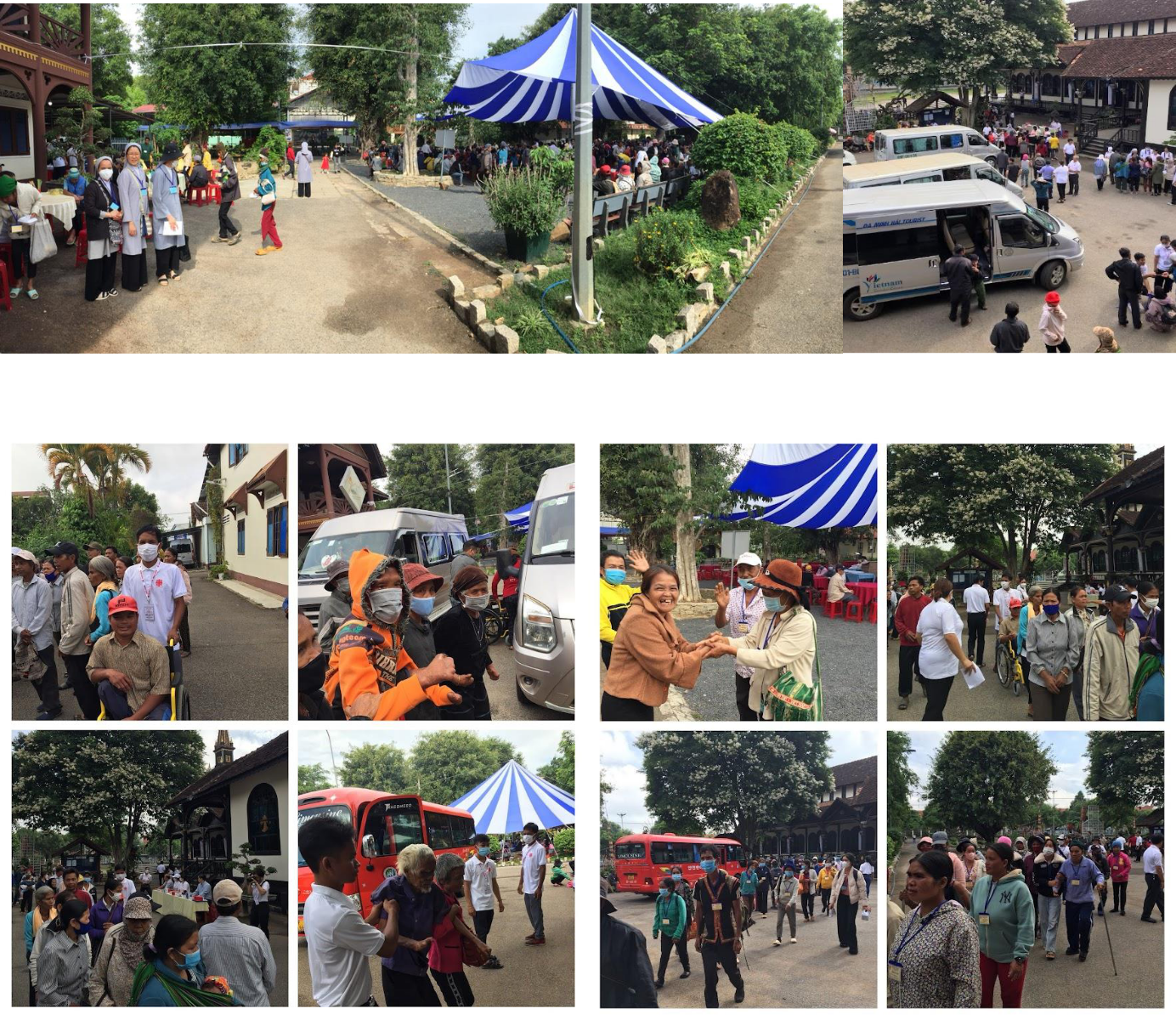 Trong niềm háo hức ngày gặp gỡ, từ 6 giờ 5 phút sáng Caritas Kon Tum được chào đón các chuyến xe đầu tiên đưa các bệnh nhân về tham dự. Những chuyến xe chở đầy niềm vui sướng của mỗi tham dự viên (TDV) cũng là niềm hân hoan được đón tiếp những người con giáo phận về hội tụ. Vui sướng vì được gặp lại nhau, được trân trọng đón chào trong yêu thương sau thời gian phải giãn cách; Vui sướng vì được ra khỏi cuộc sống buồn tẻ, lầm lũi hằng ngày trong góc khuất của cuộc đời tưởng như đã bị niêm phong vì hoàn cảnh bệnh tật. Vui sướng vì được ngon miệng thưởng thức điểm tâm tô bún riêu, hộp xôi đúng chất phố thị, được thư giãn, hàn huyên nói cười với nhau bên ly cà-phê sau hành trình dài vật vã do không mấy khi được đi lại trên những phương tiện mà có khi cả cuộc đời chỉ được dăm ba lần sử dụng.