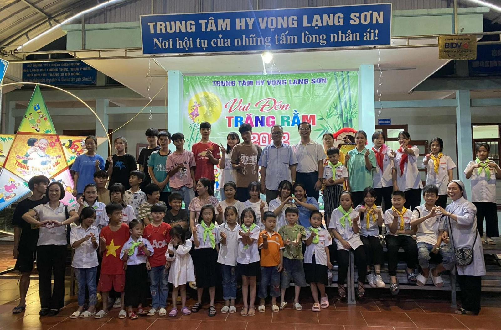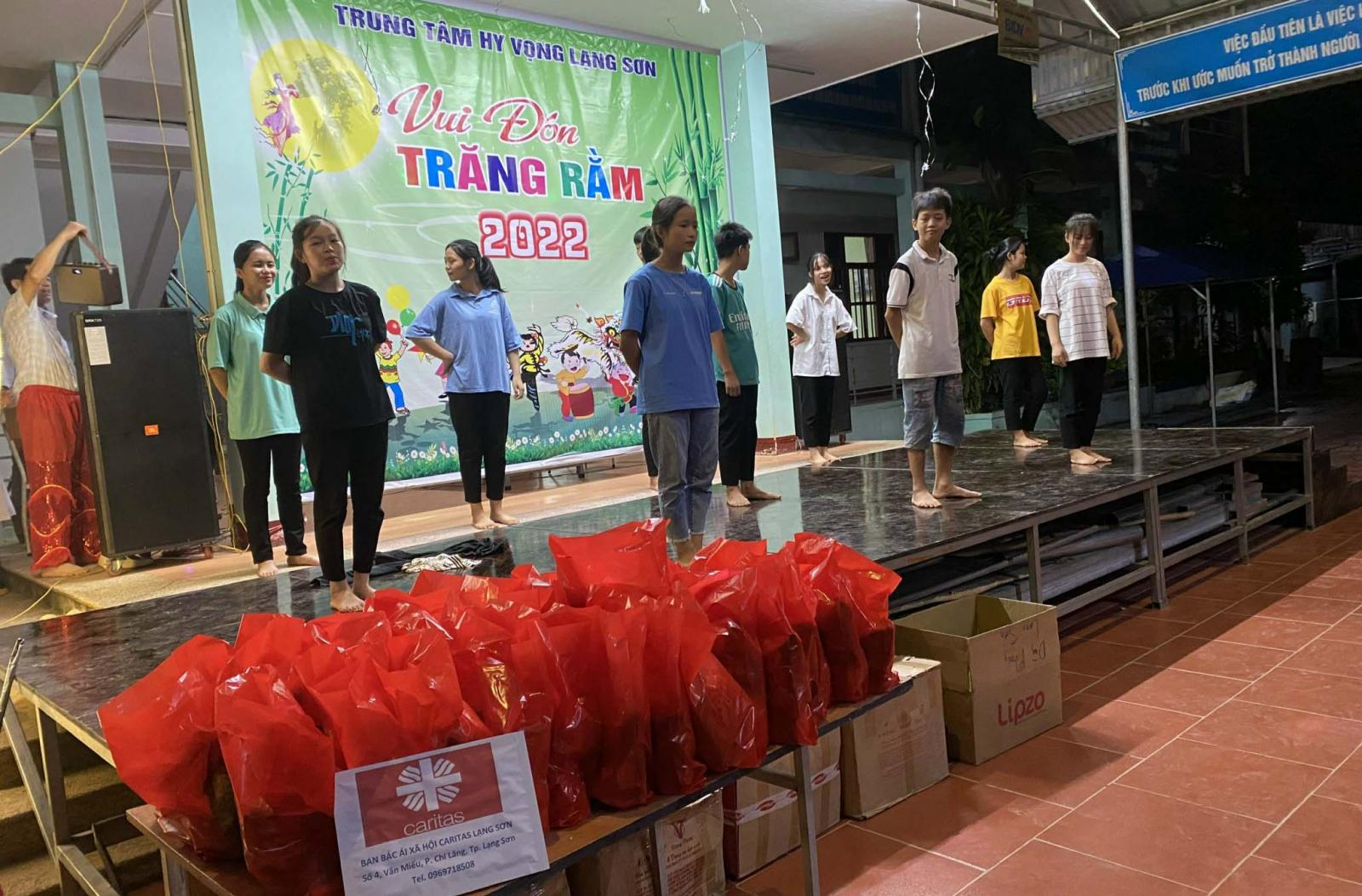 Nhằm tạo không khí vui tươi, phấn khởi giúp các em thiếu nhi hiểu được ý nghĩa ngày tết Trung Thu, cũng như tạo sân chơi bổ ích, lành mạnh, góp phần bồi dưỡng thêm những kiến thức, và giáo dục các đức tính tốt đẹp, hầu tạo động lực cho các em trong học tập. Caritas Lạng Sơn đã tổ chức Trung Thu cho các em ở trung tâm Hy Vọng Lộc Bình, các trẻ OCV (con của người có H). Đặc biệt, Caritas Lạng Sơn đã cùng với các em thiếu nhi giáo xứ Ngạn Sơn, đến trung tâm Hy Vọng Hữu Lũng tổ chức Trung Thu cho các em dưới hình thức: Thi đố vui, trò chơi dân gian và giao lưu văn nghệ.