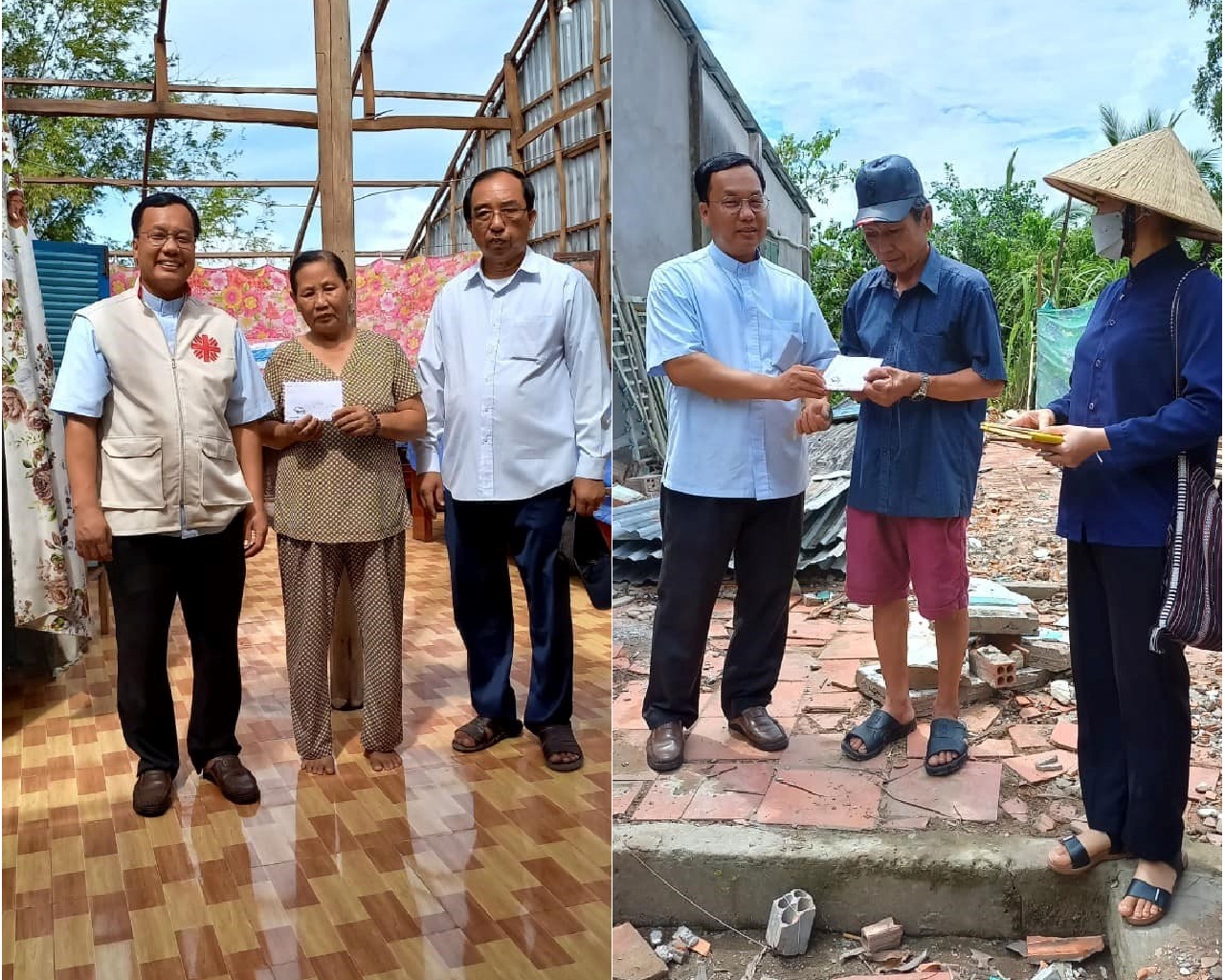 3. Ngày 11/09/2022 tại Giáo Xứ Hoà Hưng Ấp Thác Lác, Xã Hòa An, Huyện Giồng Riềng, Tỉnh Kiên Giang một cơn lốc đã làm sập đổ 8 căn nhà và 18 căn bị tốc mái. Caritas Long Xuyên đã có mặt kịp thời thăm hỏi, động viên và hỗ trợ số tiền 4 triệu cho mỗi căn bị sụp đổ, 2 triệu cho mỗi căn bị tốc mái. Tổng số tiền là 68 triệu. Cám ơn quý ân nhân đã đồng hành cùng Caritas kịp thời xoa dịu nỗi đau của bà con nơi đây.