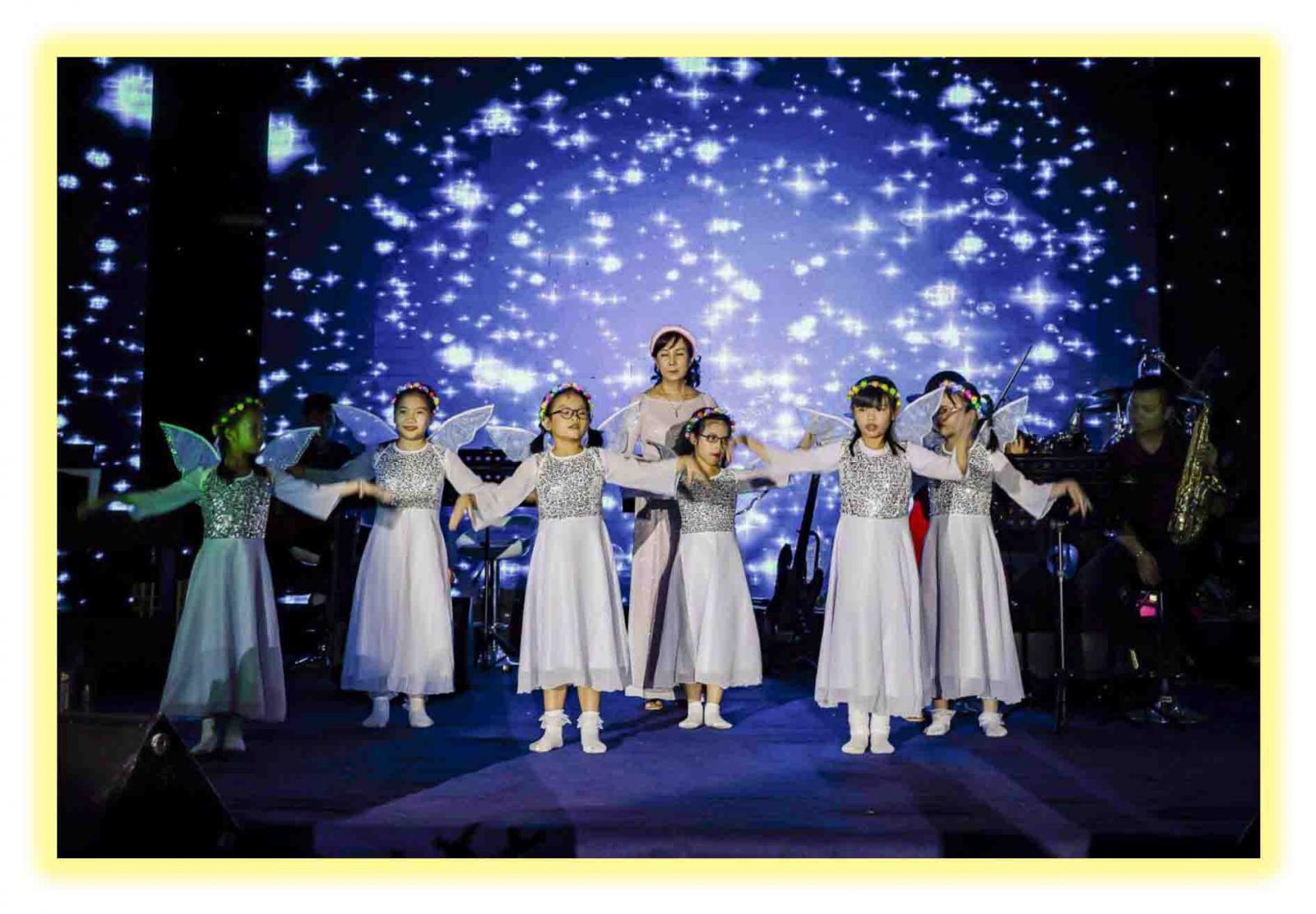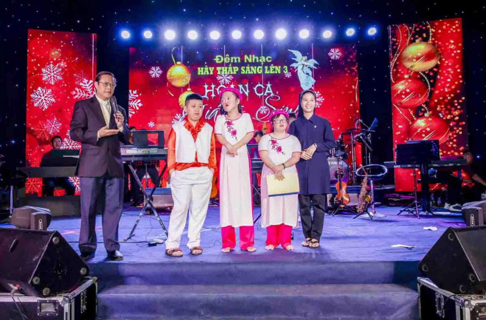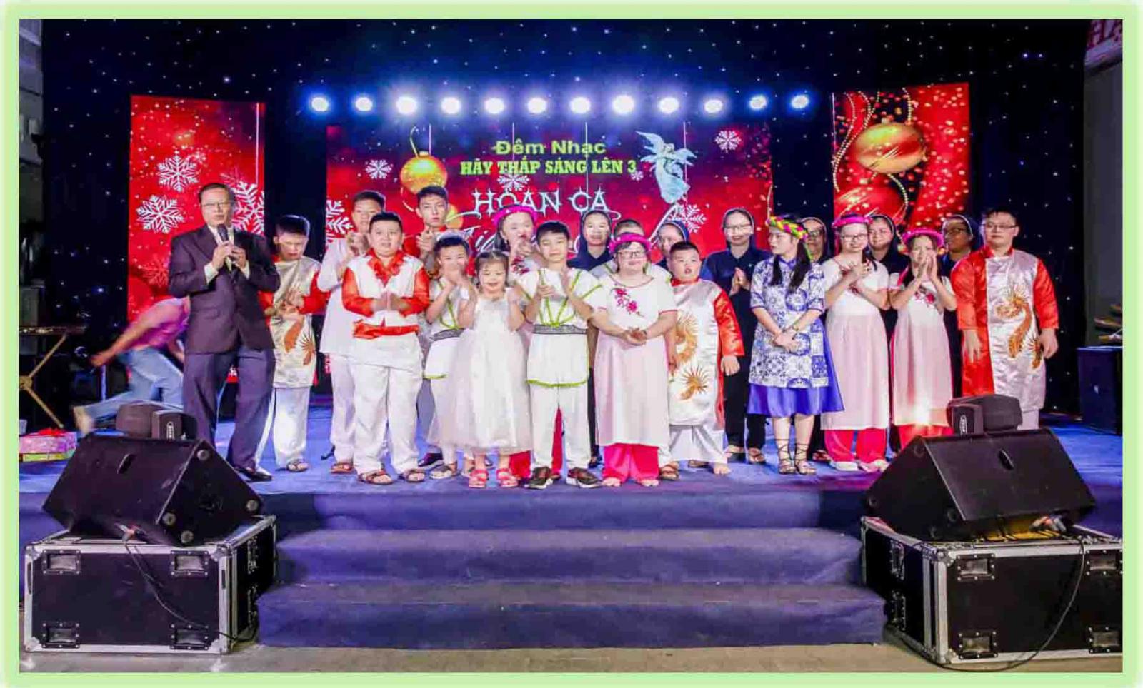 Đặc biệt đêm hoan ca Giáng sinh hôm nay có sự tham gia của các em trường Khuyết Tật Sao Mai do các Nữ Tu Dòng Khiết Tâm Đức Mẹ phụ trách. Các em rất hạnh phúc vì được ở trong tình thương của mọi người. Khi các em diễn lại tâm trạng “nỗi lòng của mẹ” một âm vang như vọng ngân trong hơn 500 cõi lòng người tham dự : “…bình an dưới thế cho những ai thiện tâm”. Tâm hồn thiện chí đươc hứng lấy bởi “Vinh Danh Thiên Chúa trên Trời”. Những tâm hồn đó đang bao bọc yêu thương các em khuyết nhưng không có tật mà có tài.