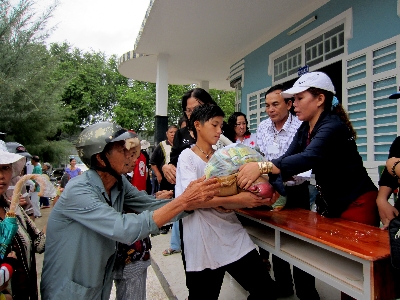Cha Giuse Phạm Xuân Mạo, quản xứ Long Hà, thay mặt Caritas Phan Thiết cảm ơn đoàn đã quan tâm đến với người dân vùng khô cằn nắng cháy Phan Rí. Cha cho biết đa phần người dân trong xã sống bằng nghề biển và làm nông nên phụ thuộc vào thời tiết, cuộc sống còn rất thiếu thốn, không có điều kiện để tới những bệnh viện lớn để khám, chữa bệnh vì quá xa, không có tiền.