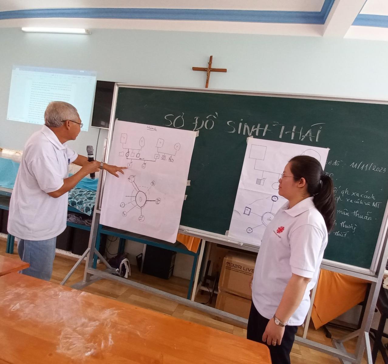 Qua sự hướng dẫn, chia sẻ của Quý Sơ và tinh thần hăng say học hỏi cũng như được thực hành bài tập qua những tình huống cụ thể, Tham dự viên đã hiểu và vẽ được sơ đồ xã hội, sơ đồ sinh thái cũng như cách làm phiếu đánh giá toàn diện đối với người khuyết tật. Nhờ đó, giúp Tham dự viên nắm rõ thông tin, hoàn cảnh, nhu cầu cụ thể để hỗ trợ người khuyết tật hoà nhập cộng đồng cách tốt hơn. Tham dự viên tham gia khó học rất nhiệt tình và sôi nổi, đặc biệt khi được thực hành vẽ sơ đồ chính gia đình của mình, nhờ đó sẽ có kinh nghiệm khi vẽ sơ đồ đối với những đối tượng mình gặp gỡ, làm việc.