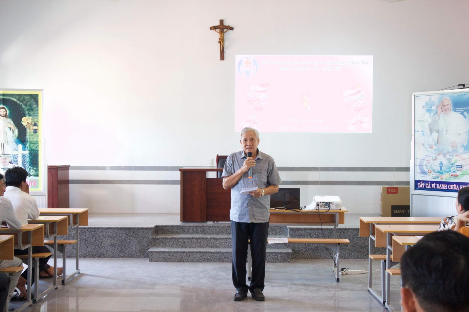 Khai mạc khóa học có sự hiện diện của Cha Giám Đốc Caritas - Phêrô Nguyễn Đình Sáng, với những lời chia sẻ, nhắn nhủ dành cho các tham dự viên về ý nghĩa của “Caritas”, hầu khơi dậy trong lòng các tham dự viên tình yêu và lòng nhiệt thành dành cho những người kém may mắn, những người đang mặc cảm tự ti bởi những gì họ đang gánh lấy. Đồng thời, cha cũng mong mỏi, ước mong các tham dự viên biết dang rộng vòng tay ôm lấy người những người có hoàn cảnh đặc biệt trong xã hội.
