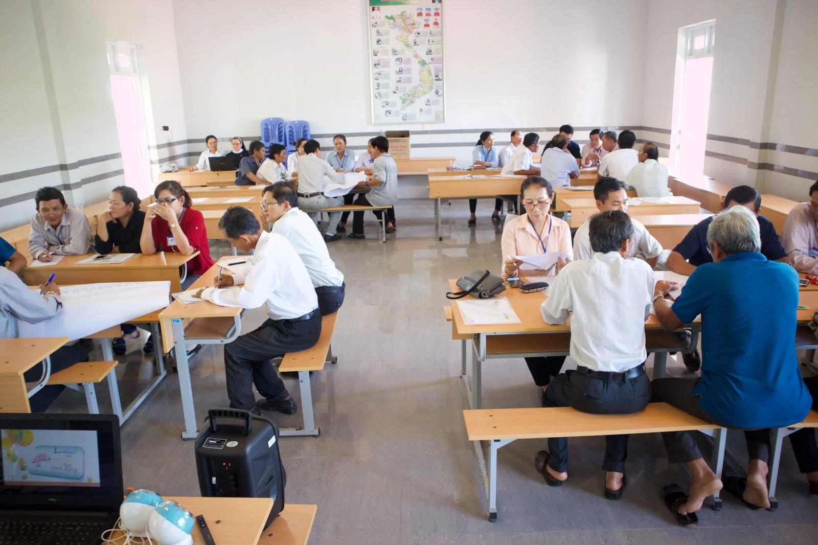 Bên cạnh đó các tham dự viên được hướng dẫn chia nhóm nhỏ thảo luận, đóng vai, xử lý tình huống mà giảng viên đưa ra. Với phương pháp học này đã làm cho không khí lớp học trở nên sôi nổi, tươi vui, đồng thời mọi người tích cực hơn khi tham gia vào các tiết học.