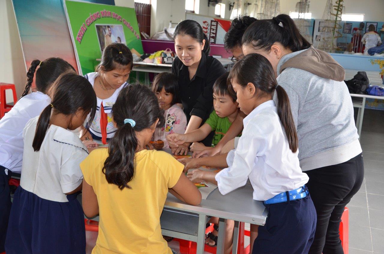 Buổi trưa các em dùng cơm với nhau thật vui vẻ và đầy ắp tình huynh đệ. Vào buổi chiều, sau những phần học tập, vui chơi, các em được Quý Soeur và các anh chị tình nguyện viên hướng dẫn mua hàng theo ý muốn của mình, được lựa chọn những đồ dùng học tập cần thiết cho mình. Bên cạnh đó, các em cũng nhận được những chiếc bánh ngon ngọt, đó là niềm vui, niềm hạnh phúc của tuổi thơ. Nhìn các em tung tăng vui cười, chúng tôi – Ban Caritas Phan Thiết ước mong các em luôn có một tuổi thơ lành mạnh, trong sáng hồn nhiên. Cách riêng, mong các em OVC biết quên đi những mặc cảm, sự kỳ thị để rồi biết vươn lên sống hòa nhập với cộng đồng. Xin Chúa luôn gìn giữ và chúc lành cho các em.