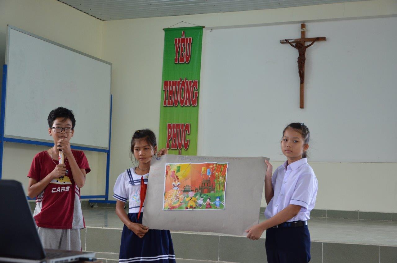 Sau những phút sinh hoạt, làm quen với nhau, các anh chị huynh trưởng Giáo Xứ Chính Tòa đã góp vui bằng màn biểu diễn múa lân làm cho không khí hội trường thêm sôi động. Lồng ghép với chương trình trung thu, Quý Soeur đã giúp các em về “ Kỹ năng học tập và Quản lý thời gian” nhằm hướng dẫn cho các em biết lên kế hoạch và xác định mục tiêu, ước mơ của mình. Đồng thời, giúp các em nhận ra món quà quý giá mà Thiên Chúa ban cho mình đó là thời gian, để các em biết sử dụng thời gian cách hợp lý trong việc học tập cũng như trong ngày sống của mình, biết vươn lên trong học tập và biến ước mơ thành hiện thực. Hy vọng với thời gian cùng với sự đồng hành của các bậc phụ huynh, thầy cô và cộng đồng, trẻ OVC và các em đồng bào thêm tự tin, nổ lực để mạnh dạn hòa nhập cộng đồng, can đảm vượt qua những khó khăn và luôn phấn đấu để trở thành người tốt, người có ích cho xã hội và Giáo Hội.