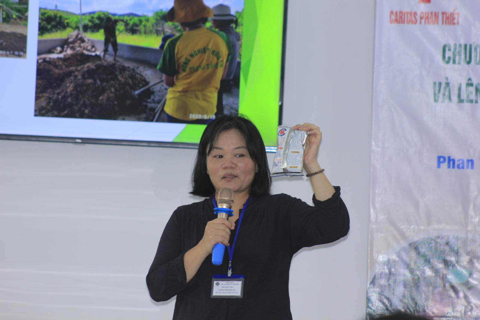 Chương trình được tiếp tục với phần trình bày về cách xử lý sâu bệnh, dịch hại bằng vi sinh của Thạc sĩ Bùi Thị Hồng Hà – Giám đốc phòng vi sinh nông nghiệp (Học Viện Nông Nghiệp Việt Nam). Cô nhấn mạnh rằng, “Chúng ta phải thay đổi tư duy, làm sao để khi nhìn thấy cỏ, sâu bệnh trên đồng ruộng mà chúng ta vẫn bình thản, thì lúc đó mới có thể làm nông nghiệp hữu cơ”. Vì làm nông nghiệp hữu cơ phải dựa trên các nguyên tắc về sức khỏe, sinh thái, sự công bằng và sự quan tâm. Bởi vì trái đất này từng ngày đang “kêu gào” vì sự tàn phá thiên nhiên của con người, đất đai không còn màu mỡ, hạt lúa làm ra không còn thơm ngon mùi vị của hương hoa đồng nội, nhưng là mùi của “hóa chất”. Đó cũng chính là lý do mà dự án PLD (People Led Development) giúp bà con nông dân hướng đến một nền nông nghiệp sinh thái toàn diện.