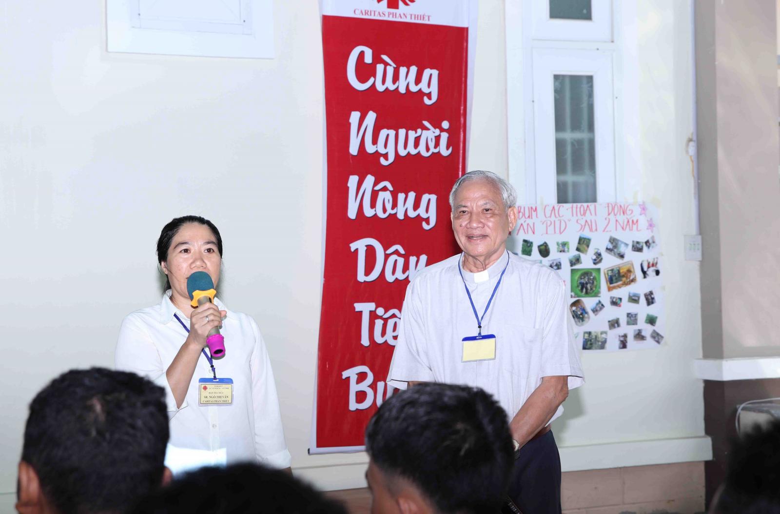 Đến tham dự có Cha Phêrô Nguyễn Đình Sáng - Giám đốc Caritas Phan Thiết, Quý Cha Đặc trách Caritas các Giáo hạt và các nhân viên văn phòng Caritas Phan Thiết, các thành viên của các Cộng đồng đang thực hiện dự án tại 5 thôn thuộc 4 xã trong tỉnh Bình Thuận, cùng tham dự có Chị Hồng Phúc và nhóm Cộng đồng thực hiện Chương trình Phát triển tự dân đến từ Caritas Đà Lạt.