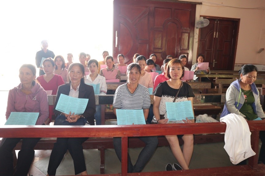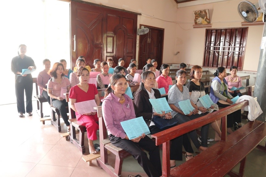 Hưởng ứng lời mời gọi khẩn thiết của Đức Thánh Cha Phanxicô, Ban BAXH - Caritas Phan Thiết đã tổ chức ba (03) buổi truyền thông về Phòng tránh buôn người cho bà con - người đồng bào tại Giáo xứ Đa tro (25 người), Giáo xứ Đagury (106 người) và thôn Bôn-thóp xã Phan Sơn (15 người) vào tháng 6/2020.