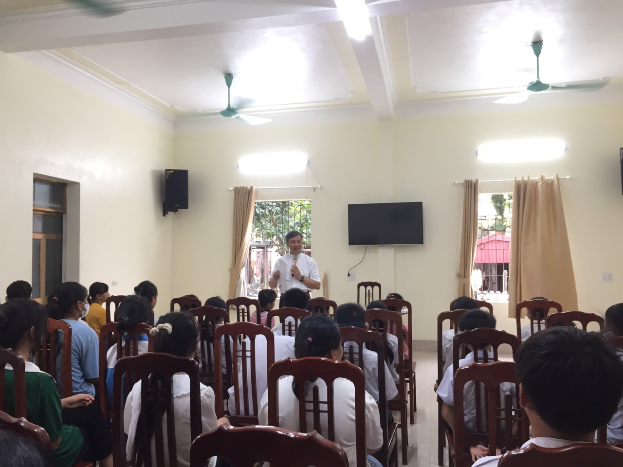 Từ sáng sớm ngày 24/06/2023 các em được tập trung về nhà thờ xứ Hòa Lạc để được cha Phaolô Nguyễn Văn Định, chính xứ Hòa Lạc, trưởng ban Gia Đình, thành viên trong ban Caritas Phát Diệm giúp các em những kỹ năng sống, để các em biết sống ngoan hơn, lễ phép hơn. Đặc biệt các em biết sống tâm tình biết ơn. Biết ơn Chúa, biết ơn ông bà, cha mẹ và những ai đã giúp các em từng bước lớn lên thành người.