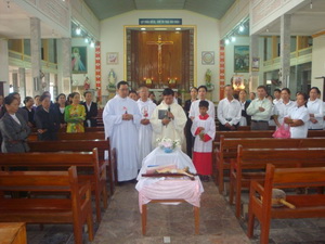 Hiện diện trong ngôi thánh đường rộng rãi của giáo xứ Cồn Thoi không chỉ là quý Cha, quý Thầy, quý nữ tu, các anh chị em trong ban BVSS, nhưng còn có hơn hai mươi thai nhi, đang được quàn trong một quan tài nhỏ đặt ngay giữa nhà thờ. Nhìn vào các em, chắc hẳn bất kỳ ai cũng không khỏi thổn thức mà tự hỏi rằng: “tại sao các em bị đối sử như thế? Cha mẹ các em đâu rồi? Họ có còn lương tâm nữa không? ...”