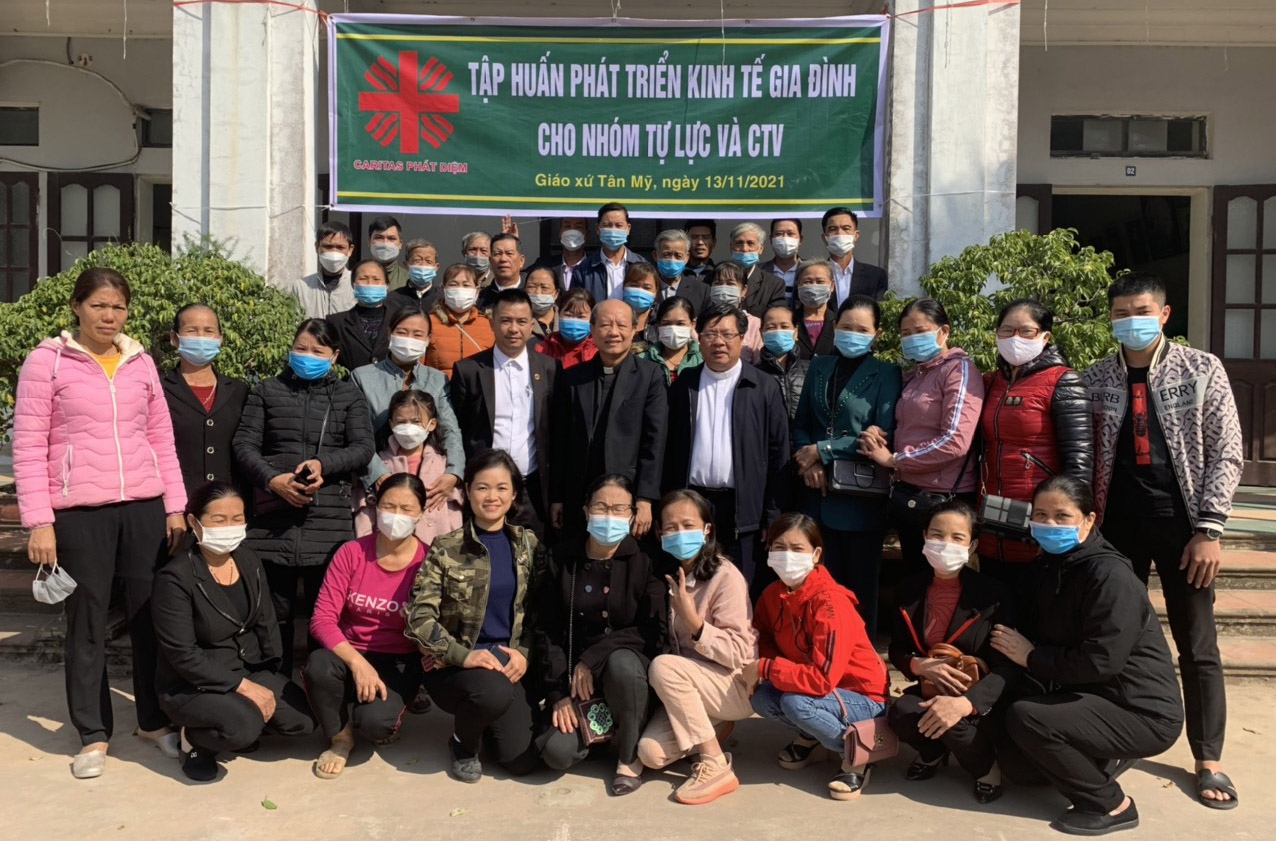 Ngày quốc tế người nghèo được Đức Thánh Cha Phanxicô khởi xướng vào năm 2016 với nội dung: “Đừng yêu thương nơi đầu môi chót lưỡi, nhưng hãy yêu thương bằng hành động”. Ngày quốc tế người nghèo năm nay Đức Thánh Cha Phanxicô chọn câu Kinh Thánh: “Người nghèo thì lúc nào anh em chẳng có ở bên cạnh mình” (Mc 14,7). Đồng hành với nhóm tự lực, ban HIV Caritas Phát Diệm muốn giúp họ có cái nhìn để phát triển kinh tế gia đình, vào ngày 13/11/2021 đã tổ chức khóa tập huấn “Phát triển kinh tế gia đình cho nhóm tự lực và các cộng tác viên” tại hội trường Giáo xứ Tân Mỹ.