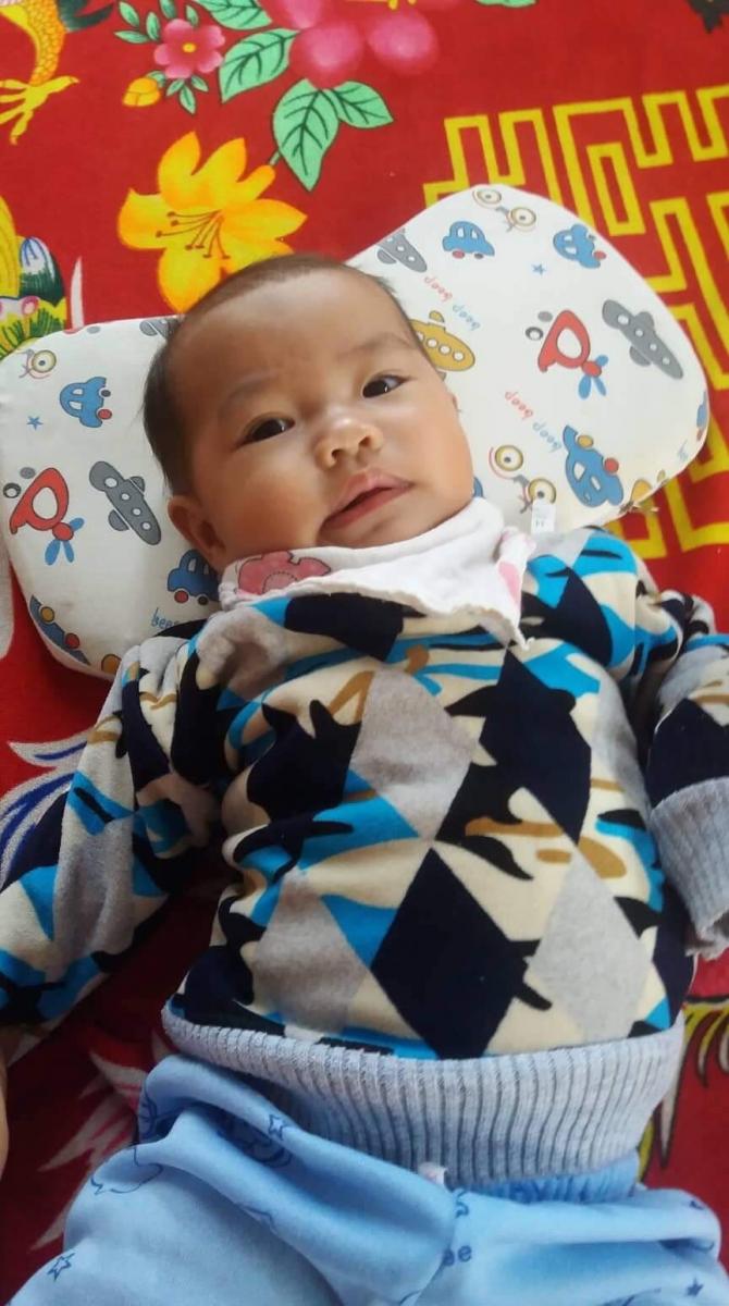 Không như bao đứa trẻ khác, khi sinh ra cháu chưa được cất tiếng khóc chào đời, thì mọi người đã nhìn thấy nước da của cháu có màu tím tái, cháu không khóc được cũng như không mở mắt được, thấy vậy mọi người đã đưa cháu đi cấp cứu ngay, từ lúc đó cháu phải cách ly với mẹ và được nuôi trong lồng kính mát não để não của cháu ổn định, sau đó cháu khóc được. Tưởng như khi khóc được cháu trở lại bình thường những ai ngờ khi cháu khóc được thì người cháu vẫn tím tái, lúc này các bác sĩ phát hiện cháu bị tim bẩm sinh, bác sĩ tiến hành điều trị luôn, chớ trêu thay cháu thở rất kém, phải đưa bình oxy để trợ giúp hơi thở của cháu.