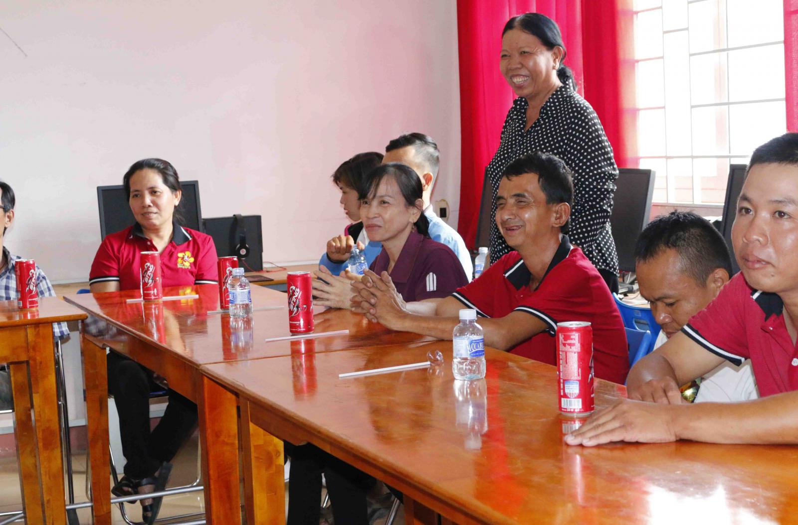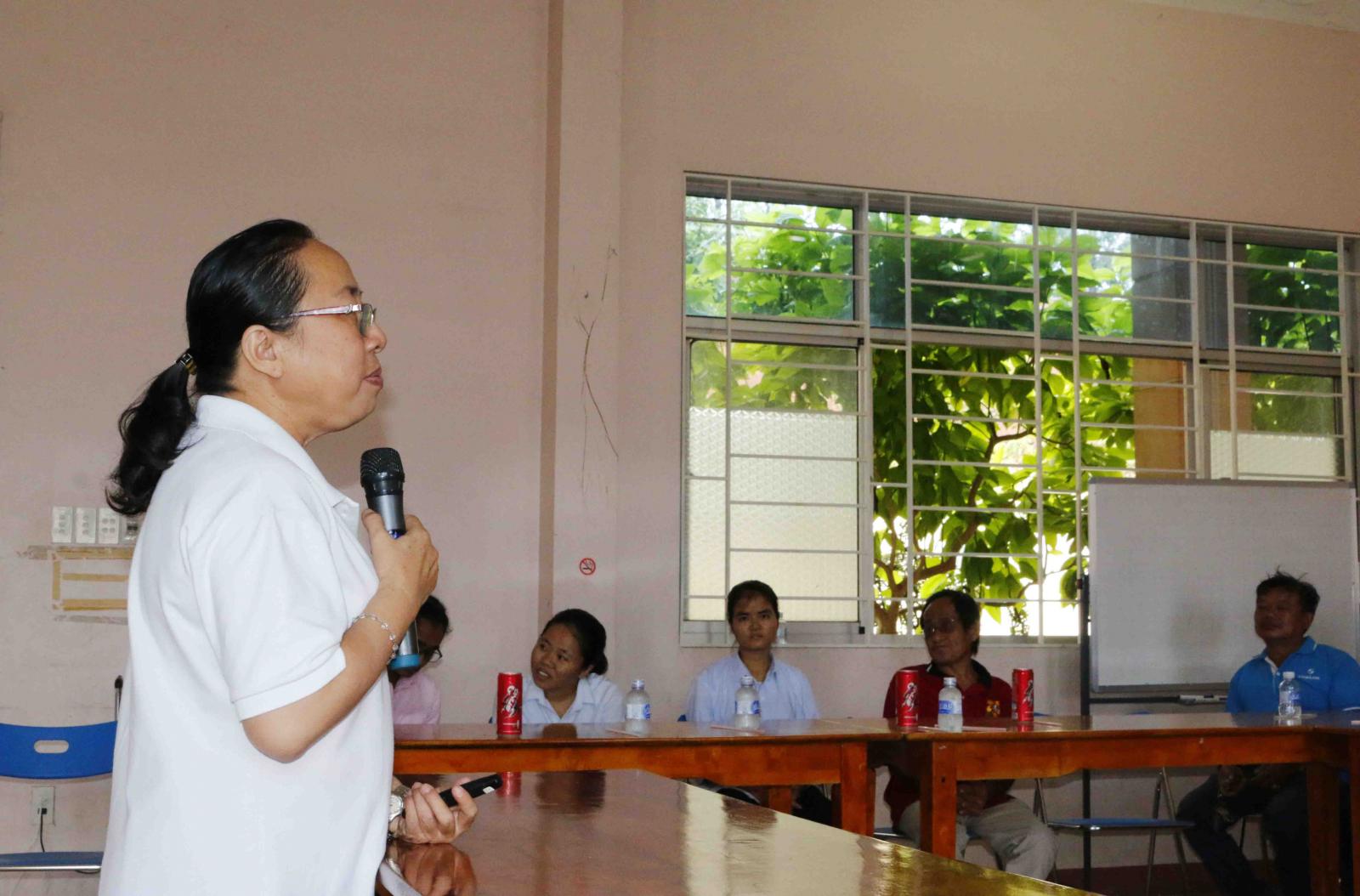 Bằng những kiến thức, kỹ năng và phương pháp trong công tác xã hội chuyên nghiệp, Chị Thanh Tuyền - Phó Giám đốc Caritas Phú Cường, đã chia sẻ cho quý anh chị người khuyết tật biết các hành vi bị cấm khi sử dụng lao động là người khuyết tật, những kỳ thị, coi thường và thiếu tôn trọng đối với người khuyết tật trong xã hội. Bên cạnh đó cũng giúp các anh chị một số kỹ năng phục hồi các chức năng xã hội mà họ bị suy giảm.