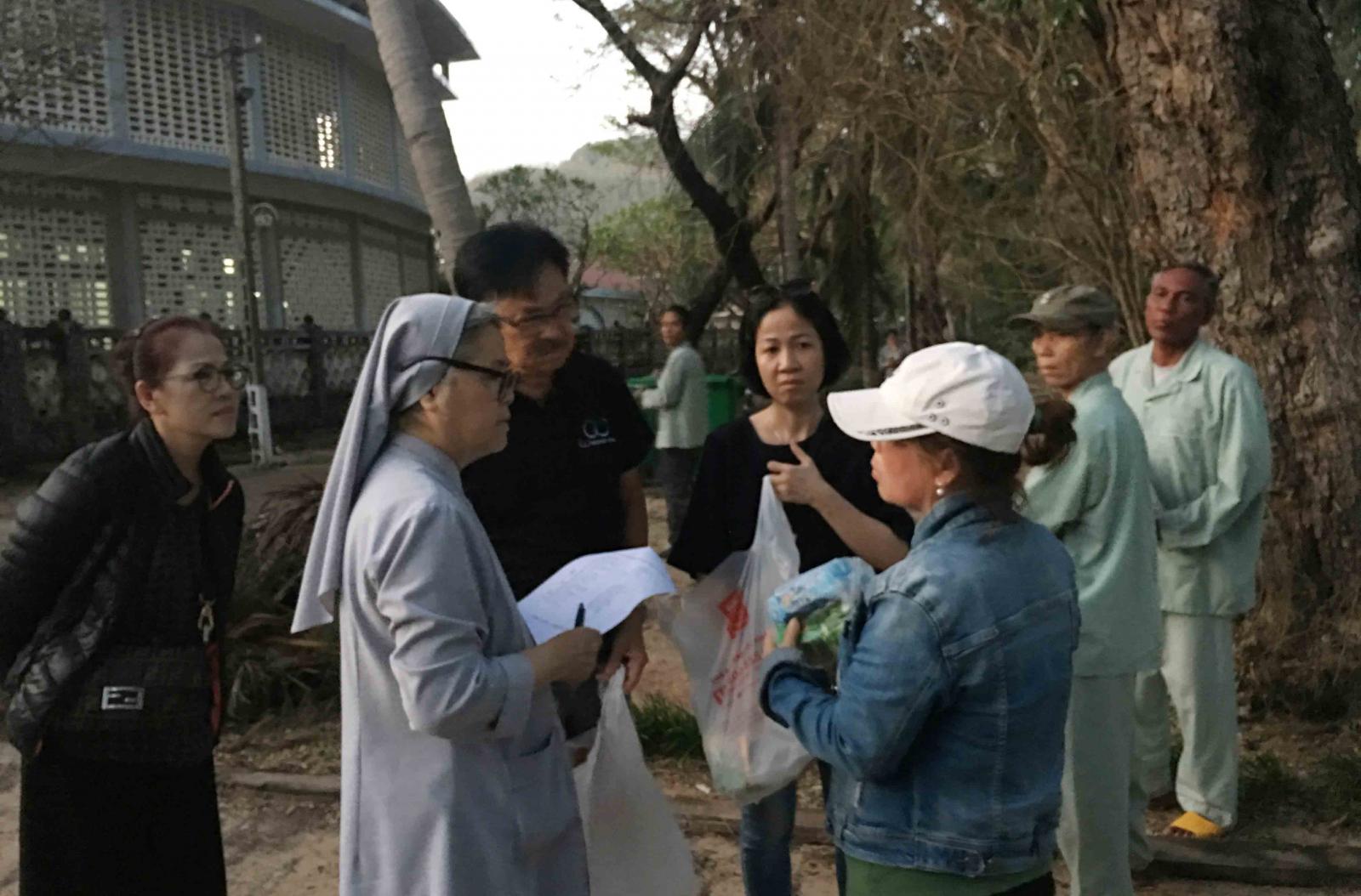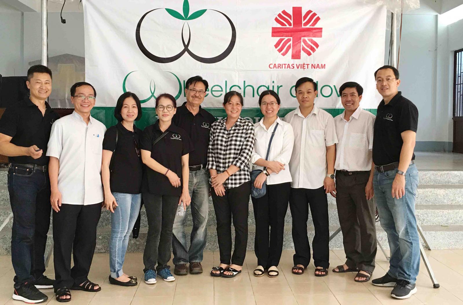 Chúng tôi gồm đại diện Caritas Việt Nam, nữ tu Têrêsa Nguyễn Thị Hoàng Mai, và và nữ tu Maria Hoàng Thị Thiên Thu. Đại diện cho Hội XLTT, chú Lê John Đức (chủ tịch), anh Danny Trần, cô Đoàn Mỹ Lee Nguyễn, anh Nguyễn Thiên Trường và chị Hoàng Thị Phương Thi. Chúng tôi được cha Phêrô Võ Hồng Sinh (Giám đốc Caritas Qui Nhơn) chào đón rất thân tình, tuy nhiên cha không thể hiện diện trong ngày làm việc cùng đoàn vì phải lo cho bà con trong cơn bão.