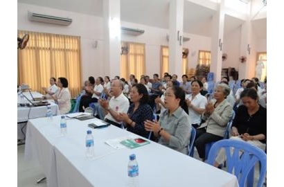 Sau lời ban huấn từ khai mạc của Cha Vinh Sơn, Cô Nguyễn Ánh Chí, giảng viên trường Đại học Y dược thành phố bắt đầu bài thuyết trình: “Phục hồi chức năng trẻ bại não tại cộng đồng”. Trong thời gian 40 phút, cô đã trình bày đến các tình nguyện viên về bệnh bại não của trẻ, những khó khăn khi trẻ không may mắc phải cùng các nhu cầu cần thiết mà trẻ cần hỗ trợ từ cộng đồng để trẻ hòa nhập và sống đời sống bình thường như bao trẻ khác.