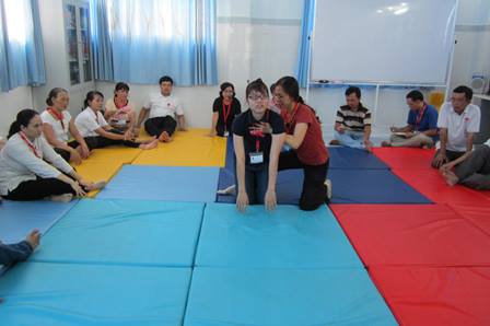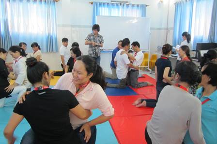 Trong quá trình nghe cô Nguyễn Ánh Chí hướng dẫn lý thuyết cũng như thực hành, các tham dự viên đã nỗ lực học tập một cách nghiêm túc, đặc biệt trong phần thực hành theo nhóm. Hai người là một nhóm nhỏ và thực hành cho nhau luân phiên đổi vai nhằm tạo điều kiện tốt nhất để tất cả tham dự viên đều nắm bắt và thực hành các động tác mà giảng viên vừa hướng dẫn.Ngày học đầu tiên kết thúc vào lúc 16 giờ 30 phút trong sự nỗ lực không ngơi nghỉ của “cô giáo” và cả “học trò”. Khóa tập huấn thực hiện trong 5 ngày thứ Bảy từ 31/5 đến 28/6/2014.