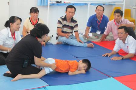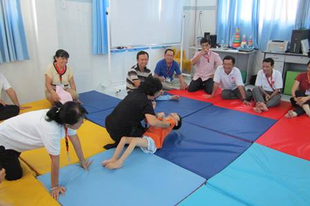 Nhận thức được tầm quan trọng và cần thiết của việc phục hồi chức năng cho trẻ bại não dựa vào cộng đồng là điều kiện ưu tiên hàng đầu nhằm giúp trẻ vượt qua những giới hạn của bản thân để sống hòa nhập vào cộng đồng, vào lúc 7 giờ 30 phút ngày 31/5/2014, ban Hỗ trợ người khuyết tật Caritas Sài Gòn đã khai giảng khóa tập huấn cho 25 cộng tác viên tham gia phục hồi chức năng trẻ bại não dựa vào cộng đồng tại trung tâm nuôi dưỡng và Bảo trợ trẻ em khuyết tật Thiên Phước số 156, đường An Phú Đông 11, phường An Phú Đông, quận 12.