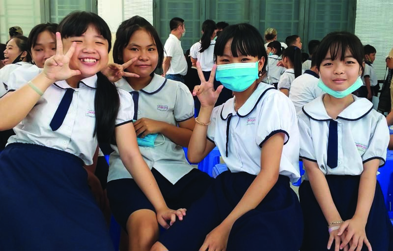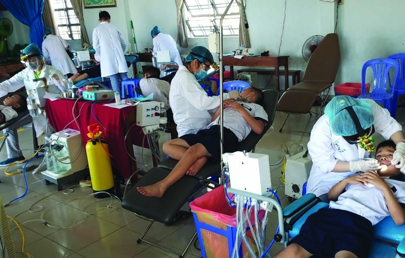 Lớp học hiện nay có 240 em, chia làm 9 lớp tùy theo độ tuổi. Ngồi giữa các em Ngọc Hưng, Yến Nhi, Tuyết Trinh, Thanh thảo, Kim Phương, tất cả đều đang học lớp 4, các em cho biết đây là lần thứ 2 các em được khám bệnh tại trường. Ở nhà nếu có bệnh chỉ được giựt gió, sức dầu, nặng thì má mua vài viên thuốc uống đỡ…chứ không được như ở trường. Khám ở đây chúng em được ăn sáng, phát thuốc, cắt tóc miễn phí và còn được quà đem về nữa!