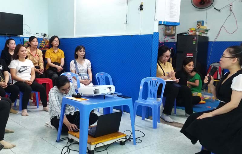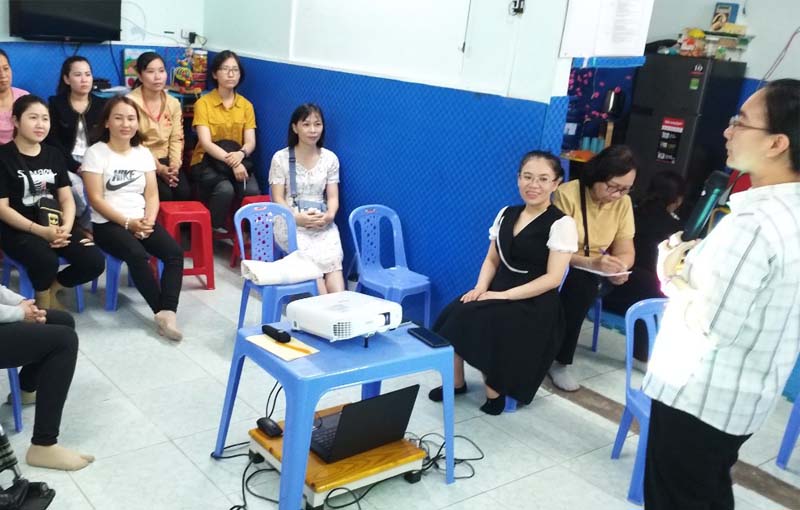 Các anh chị từ Trung tâm DRD đã giúp phụ huynh nắm rõ những quyền lợi luật pháp quy định dành cho NKT. Đồng thời giải đáp mọi thắc mắc về quyền lợi của các phụ huynh có con là NKT.