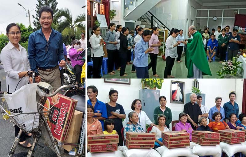 Sau Thánh Lễ cha Vinh Sơn đã phát quà hỗ trợ cho các bệnh nhân và các hoàn cảnh khó khăn ở địa bàn. Quà tặng lần này do SaiGon Children Charity (SCC) tài trợ, gồm 25 phần, mỗi phần bao gồm: bao gạo 30kg, 2 thùng mì, 1 thùng nhu yếu phẩm..
