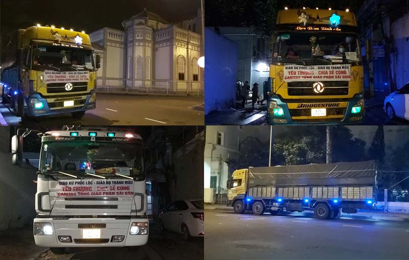 Vào lúc 23g15 ngày 12-8-2021, tại Dòng Mến Thánh Giá Khiết Tâm (MTG KT), địa chỉ 116/3 Hùng Vương, phường 9, Q.5, (Nhà hưu dưỡng Hà Nội); sơ Têrêsa Nguyễn Thị Ngọc Thủy – Phó Giám Đốc Caritas TGPSG, đã tiếp nhận 2 xe hàng, chở hơn 22 tấn gồm 35 loại mặt hàng; xuất phát từ Dòng MTG KT - Cộng đoàn Phúc Lộc (PL), tại giáo họ Thánh Mẫu, giáo xứ Phúc Lộc, Giáo phận Ban Mê Thuột, chuyển đến cho Caritas Tổng Giáo Phận Sài Gòn (TGPSG), nhằm mục đích giúp cho những người nghèo khó bị ảnh hưởng bởi đại dịch Covid.
