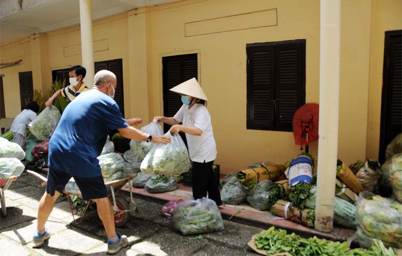 Linh mục chánh xứ Martinô hạt Gia Định đã tự lái xe đến nhận rau củ quả để phục vụ cho “Điểm phát cơm miễn phí hỗ trợ mùa dịch Covid” tại giáo xứ, Cha bộc bạch là mình đang nghĩ: “Không biết ngày mai mình lấy gì để nấu đây? Đúng lúc đó sơ Thủy gọi điện báo đến nhận rau củ quả. Tạ ơn Chúa con mừng quá, thế là bếp ăn lại có rau!” Cha cũng cho biết, người giúp Bếp ăn thì như “muối bỏ bể” nhưng Chúa vẫn nuôi dân của Ngài. Mình chỉ có “5 chiếc bánh và 2 con cá” trao cho Ngài và Ngài tiếp tục hóa ra nhiều, nuôi Bếp ăn trong suốt 8 năm qua. Mùa dịch này, mỗi ngày Bếp ăn lo cho hơn 1000 phần ăn: phục vụ cho những người nghèo đến nhận, khu cách ly, nhân viên làm công tác phòng dịch...trong địa bàn của phường 17 và 21, quận Bình Thạnh. Cha đã cảm ơn những người cộng tác giúp cho Bếp ăn luôn đỏ lửa để giúp người nghèo. Việc làm này cũng mang ý nghĩa truyền giáo.