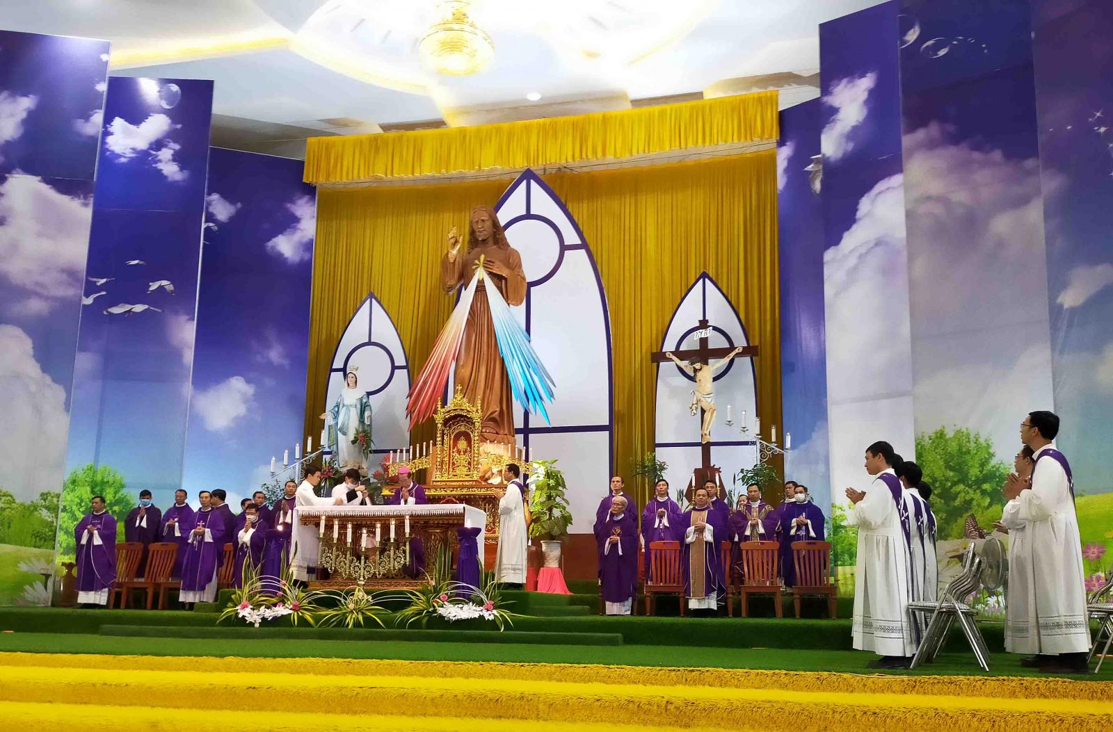 Cao điểm của ngày hội ngộ là thánh lễ do Đức cha Phêrô chủ tế. Các cha, các thầy phó tế, các tu sĩ, các chủng sinh và các thành viên trong đại gia đình người khuyết tật cùng sốt sắng hiệp dâng thánh lễ với Đức cha trong phụng vụ ngày Chúa nhật thứ IV Mùa Vọng.