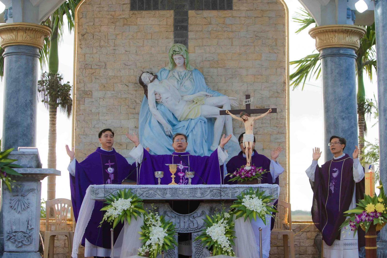 Thánh Lễ do Cha Augustino Phạm Quang Tường – chánh xứ Lương Điền chủ tế, đồng tế với ngài có Cha Micae Nguyễn Khải Hoàng – Linh hướng ban BVSS Giáo phận Thái Bình và quý Cha Dòng Đa-minh thuộc cộng đoàn Kính Danh xã Đông Minh, Tiền Hải. Hiện diện trong Thánh Lễ có tất cả các thành viên thuộc nhóm BVSS Cam Lai, cộng đoàn Giáo họ Cam Lai, cộng đoàn Giáo xứ Lương Điền, ban BVSS – Caritas Giáo phận, đại diện 09 nhóm BVSS trong Giáo Phận, quý ân nhân BVSS, ban Mục Vụ Truyền Thông Đông Hưng – Ephata và một số anh chị em tôn giáo bạn làm thành một cộng đoàn phụng vụ sốt sắng và hiệp nhất.