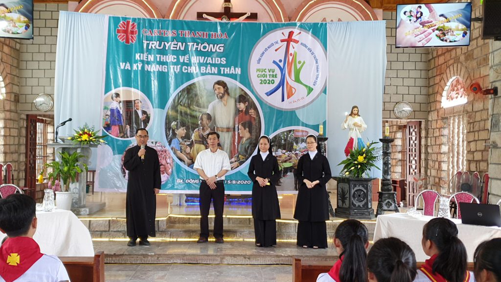 Chiều ngày 15/8/2020, tại Nhà nguyện Giáo họ Phượng Áng, Giáo xứ Đông Yên, Caritas Giáo phận Thanh Hóa đã có buổi gặp gỡ và chia sẻ cùng các bạn trẻ trong Giáo xứ với chủ đề “kiến thức về HIV/AIDS và kỹ năng tự chủ bản thân”. Có thể nói, đây là một bước đi mới trong cách thức hoạt động của Caritas Thanh Hoá khi dấn thân vào việc nâng cao chất lượng dân trí cho cộng đồng. Cụ thể, trong lần đầu tiên này, Caritas Thanh Hoá hướng chính yếu đến các bạn trẻ theo tinh thần của năm mục vụ 2020: đồng hành với người trẻ hướng đến sự phát triển toàn diện.