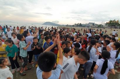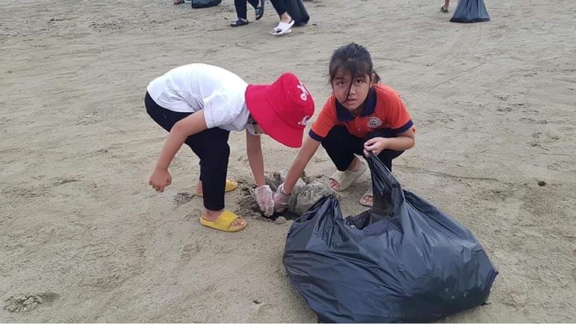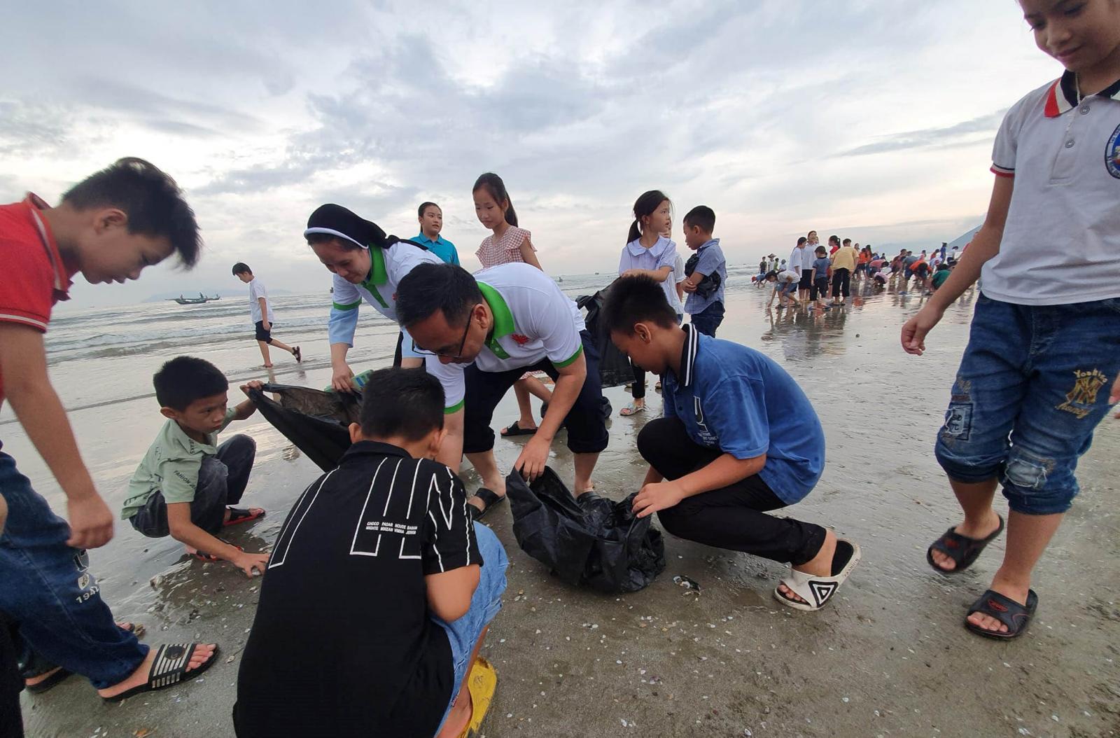 Caritas Thanh Hóa: Cùng thiếu nhi Ba Làng làm sạch bờ biển quê hương thân yêu
